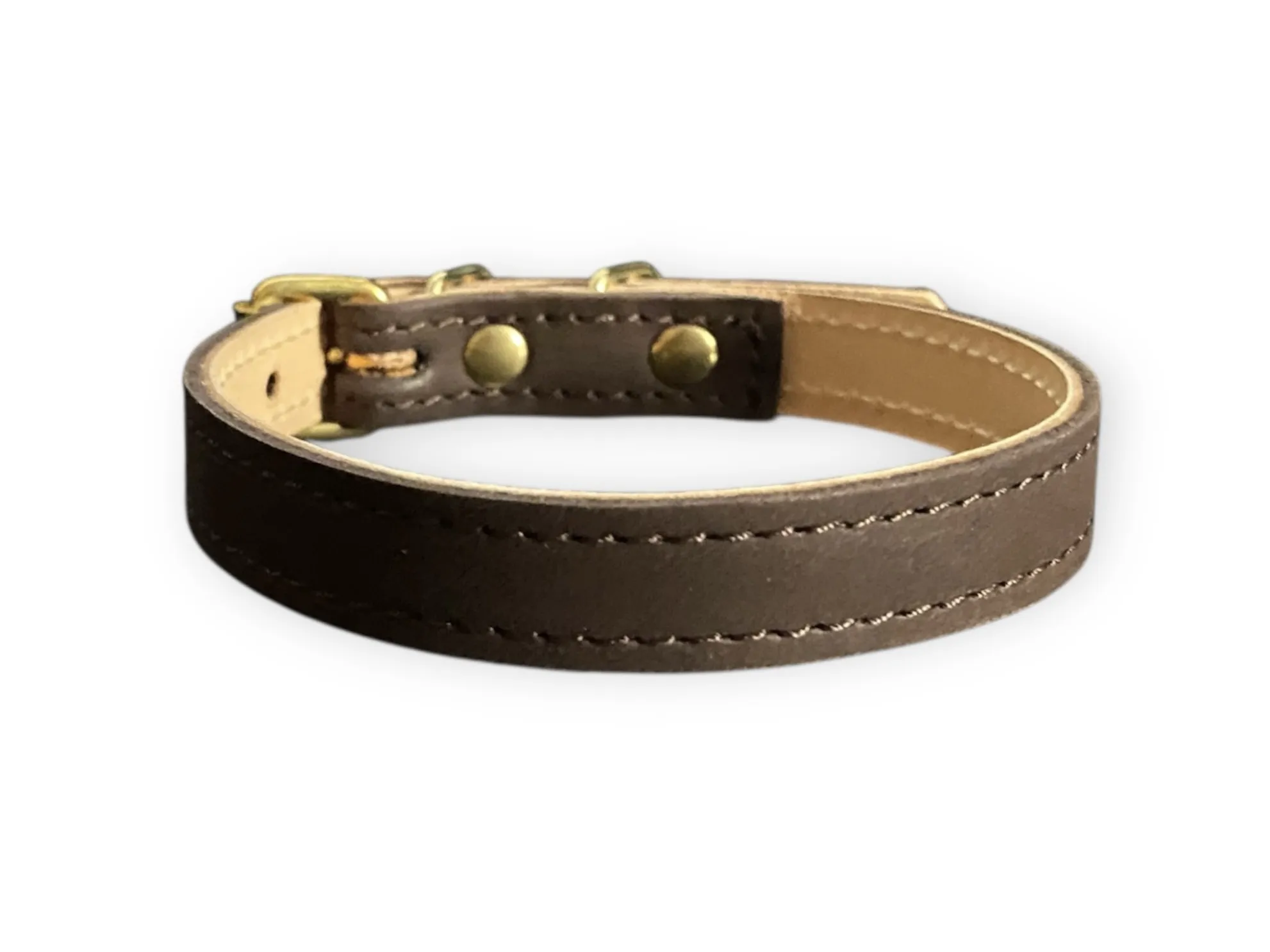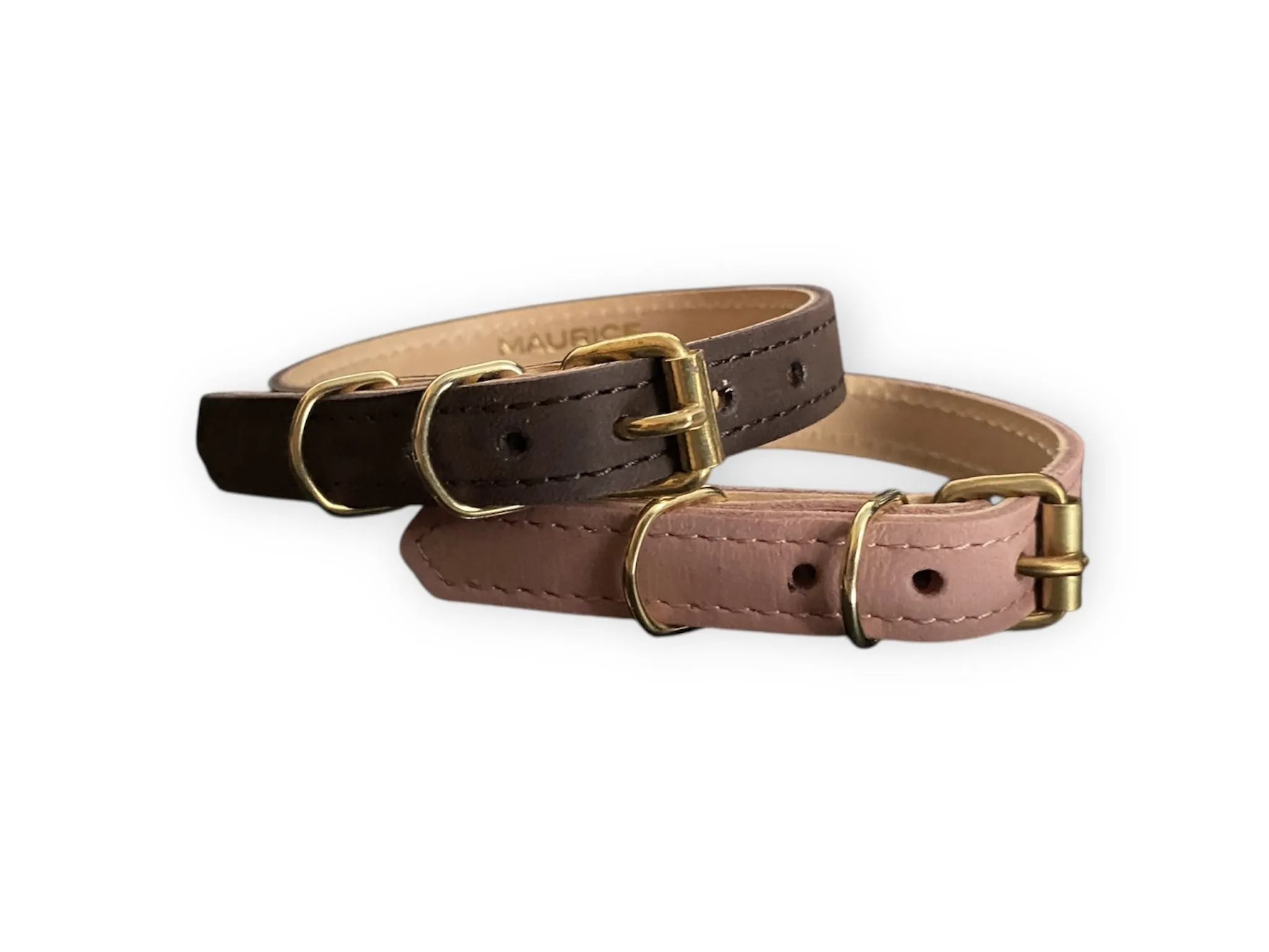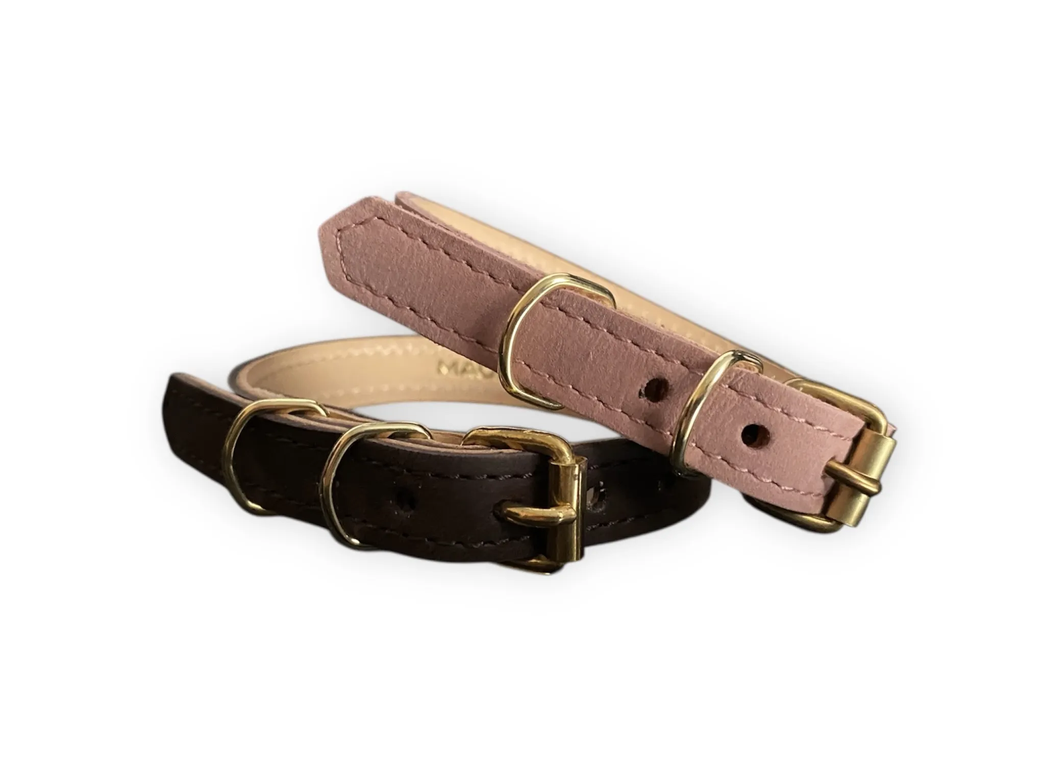 The BUBO BUBO collar wraps your little companion in refined, understated chic, blending softness, comfort and sophistication. Crafted from upcycled premium nubuck and lined with natural vegetable-tanned leather, this small dog collar stands out for its subtly velvety texture and meticulous artisanal finish—an ultra-chic accessory for tiny dogs seeking both softness and style.